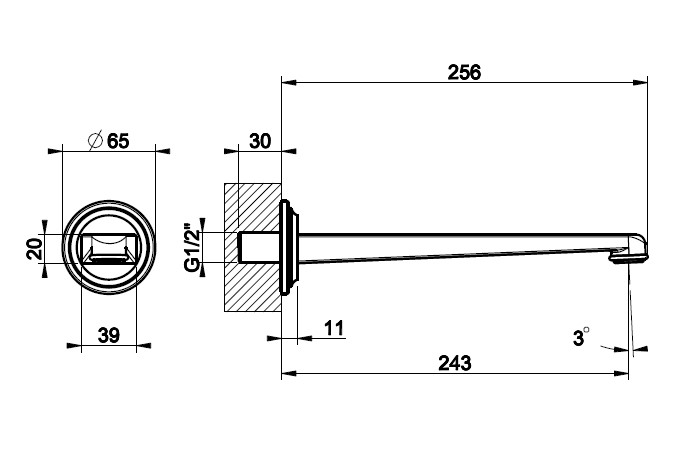 Gessi Venti20 Wylewka umywalkowa ścienna długa chrom 65101.031