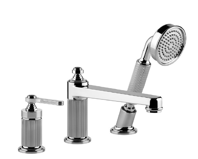 Gessi Venti20 Bateria wannowa 3-otworowa z przełącznikiem, wężem 1,5 m, słuchawką i wylewką chrom 65037.031