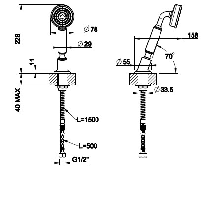 Gessi Venti20 Słuchawka z uchwytem i wężem prysznicowym 1,5 m chrom 65127.031