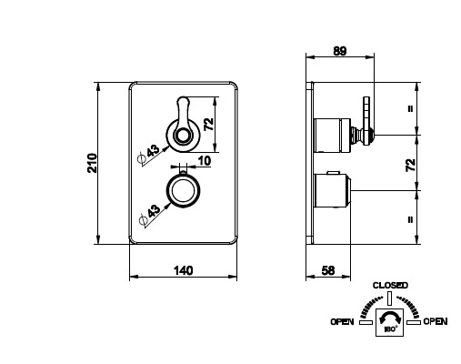 Gessi Venti20 Bateria natryskowa termostatyczna ścienna z przełącznikiem 2-drożnym element zewnętrzny chrom 65135.031