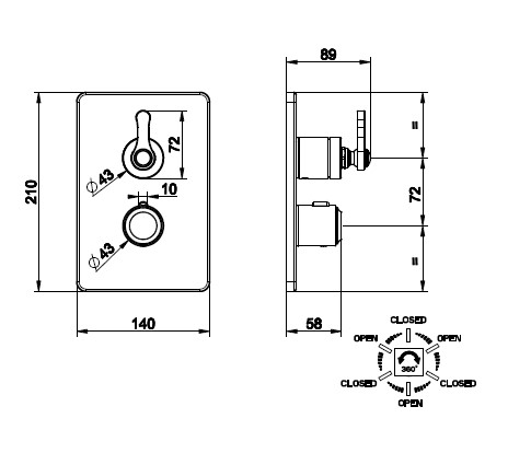 Gessi Venti20 Bateria natryskowa termostatyczna ścienna z przełącznikiem 3-drożnym element zewnętrzny chrom 65137.031