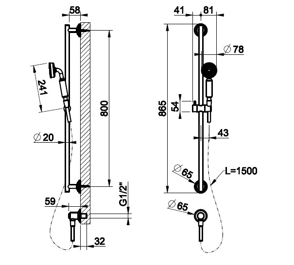 Gessi Venti20 Drążek prysznicowy ze słuchawką,wężem 150 cm i przyłączem wody chrom 65141.031