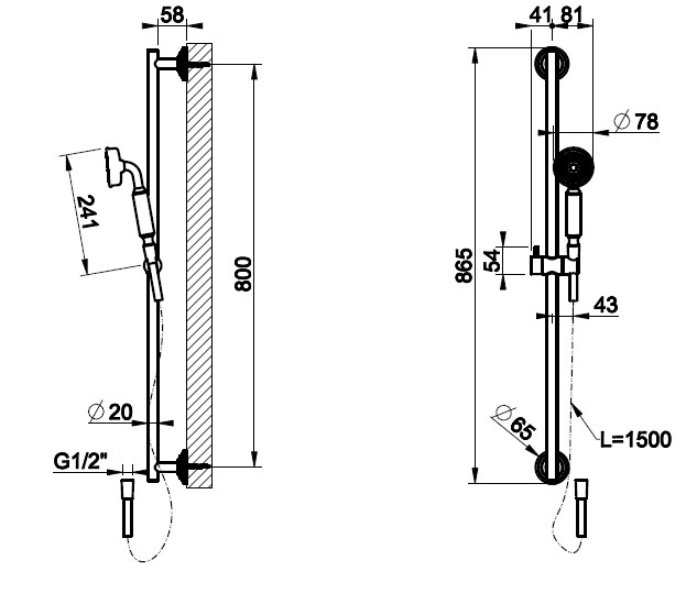 Gessi Venti20 Drążek prysznicowy ze słuchawką,wężem 150 cm chrom 65143.031