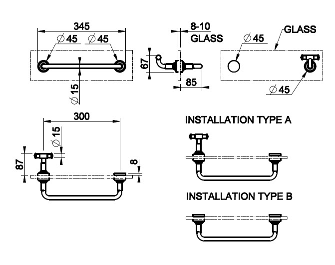 Gessi Venti20 Wieszak ścienny na ręcznik 30 cm mocowanie ze szkła chrom 65511.031