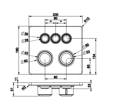 Gessi Hi-Fi Eclectic Compact Bateria prysznicowa termostatyczna ścienna z trzema przyciskami element zewnętrzny chrom 65234.031
