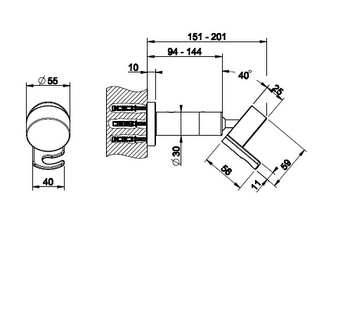 Gessi Hi-Fi Eclectic Uchwyt prysznicowy ścienny regulowany czarny mat 63057.299