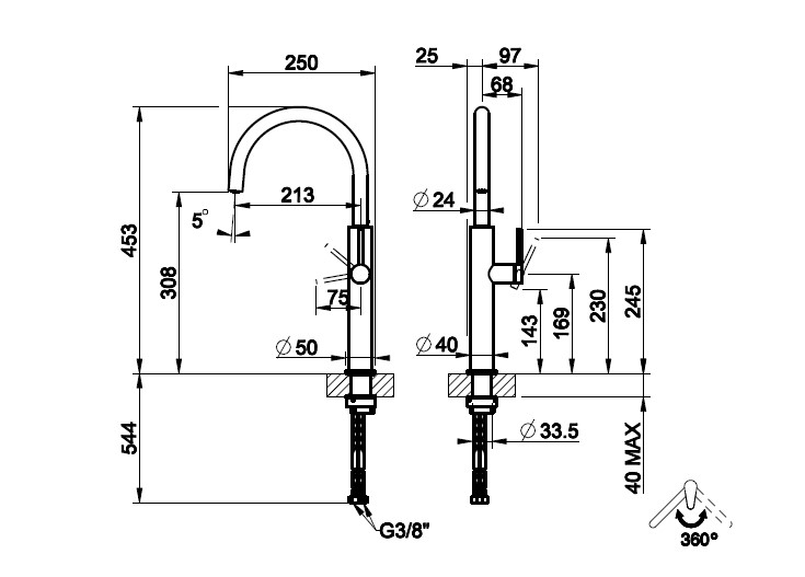 Gessi 316 Bateria kuchenna z obrotową wylewką Steel Brushed 60016.239