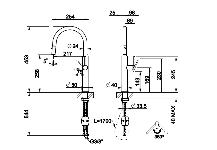Gessi 316 Bateria kuchenna z obrotową i wyciąganą wylewką Steel Brushed 60022.239