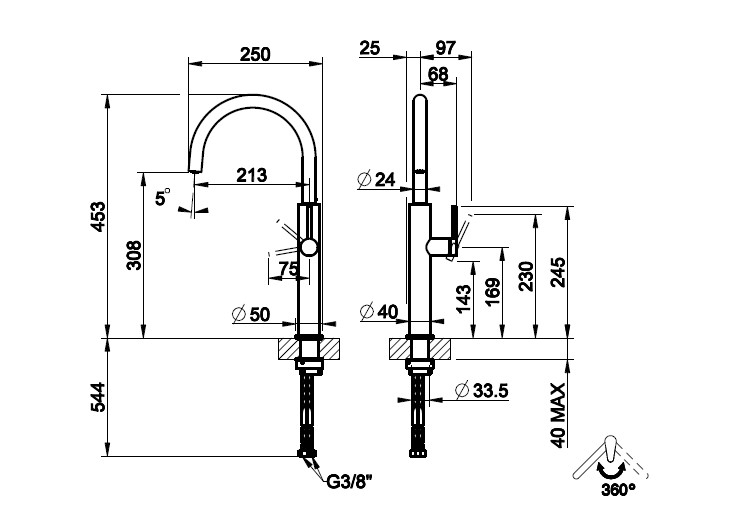 Gessi 316 Bateria kuchenna z obrotową wylewką Steel Brushed 60018.239