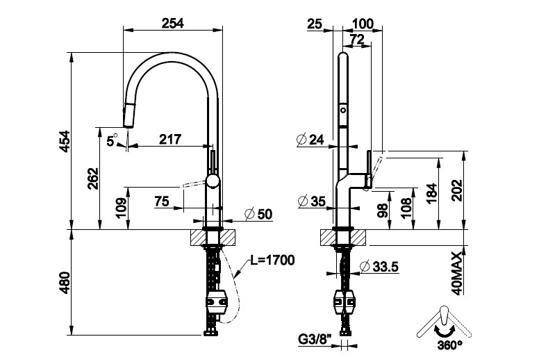 Gessi Stelo Bateria kuchenna z obrotową i wyciąganą wylewką Chrom 60303.031