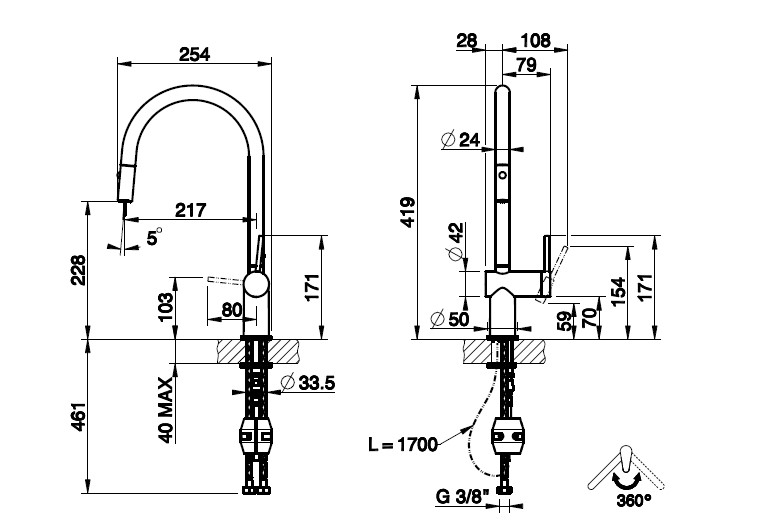 Gessi Inedito Bateria kuchenna z obrotową i wyciąganą wylewką Chrom 60413.031