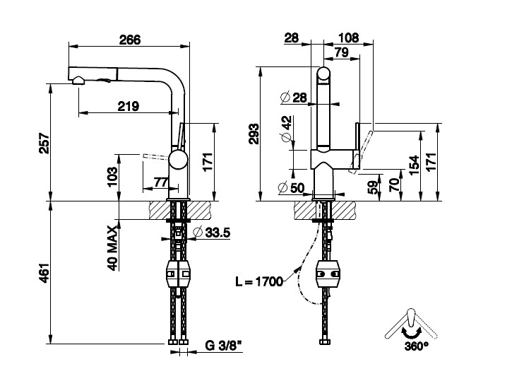 Gessi Inedito Bateria kuchenna z obrotową i wyciąganą wylewką Chrom 60435.031