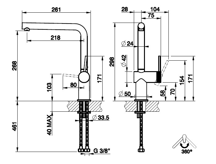 Wysokość wylewki: 26,8 cm