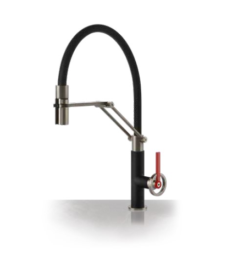 Gessi Officine V Bateria kuchenna z obrotową i wyciąganą wylewką Finox/Matte Black 60205.599