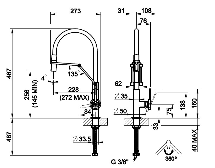 Wysokość wylewki: 25,6 cm