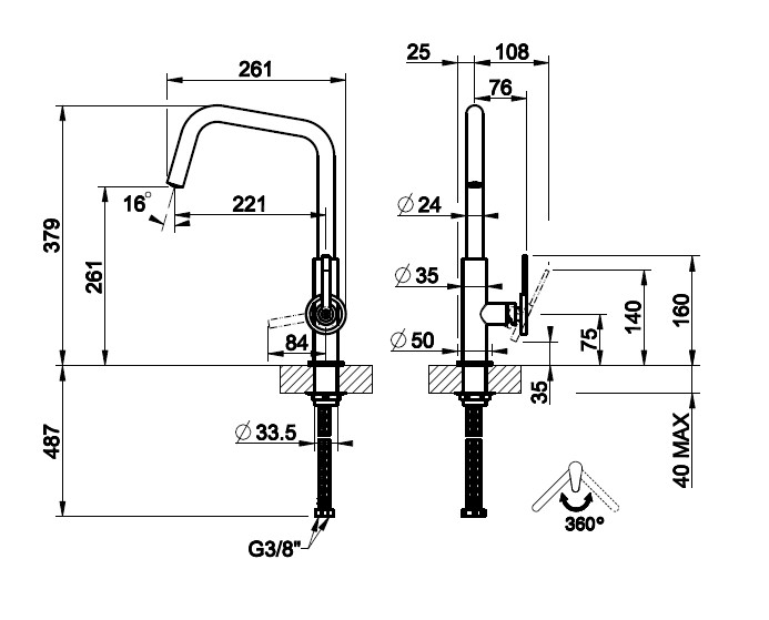 Gessi Officine V Bateria kuchenna z obrotową wylewką chrom 60201.031