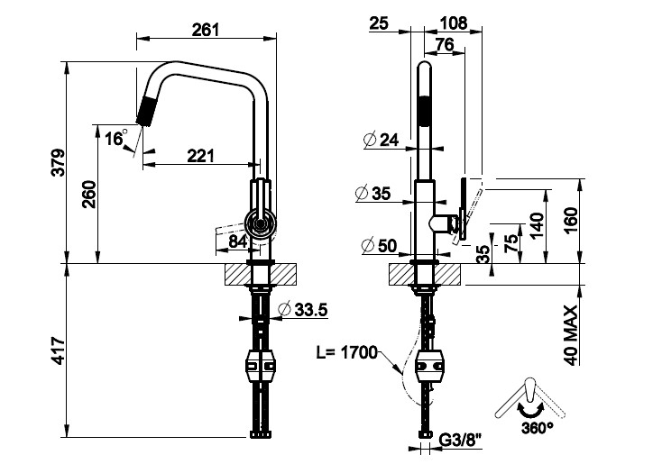 Gessi Officine V Bateria kuchenna z obrotową i wyciąganą wylewką Chrom 60203.031