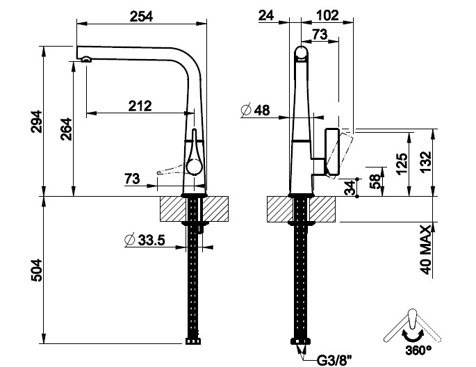 Gessi Proton Bateria kuchenna z obrotową wylewką Chrom 17175.031