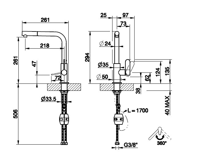 Wysokość wylewki: 26,1 cm