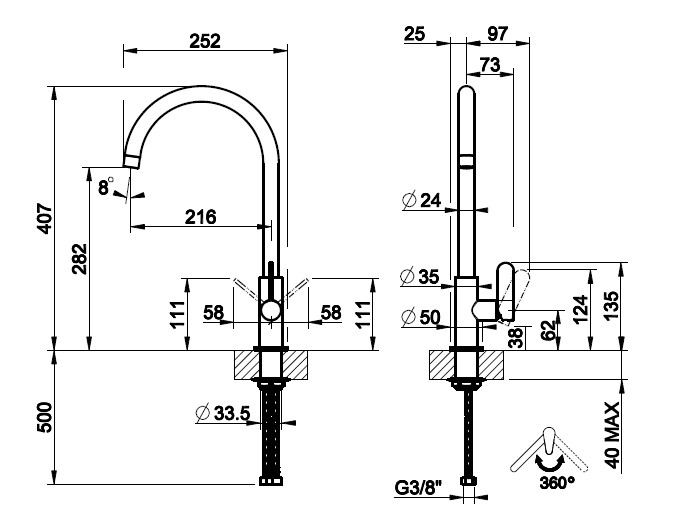 Gessi Helium Bateria kuchenna z obrotową wylewką Chrom 60075.031