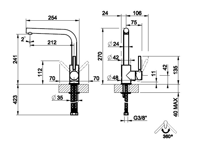 Gessi Neutron Bateria kuchenna z obrotową wylewką Chrom 17155.031