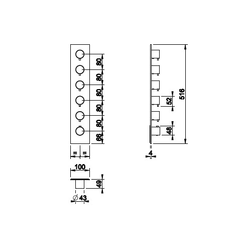 Gessi 316 Wellness Bateria prysznicowa termostatyczna ścienna z pięcioma wyjściami element zewnętrzny steel brushed 54520.239