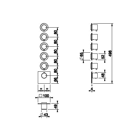 Gessi 316 Wellness Bateria prysznicowa termostatyczna ścienna z pięcioma wyjściami element zewnętrzny steel brushed 54510.239