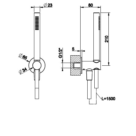 Gessi Zestaw prysznicowy ścienny z przyłączem wody, słuchawką i wężem 150 cm chrom 63329.031