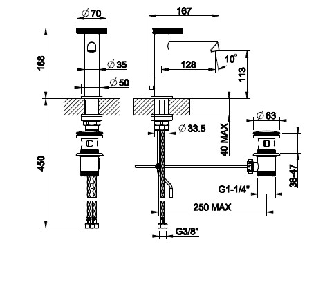 Gessi Anello Bateria umywalkowa jednootworowa z korkiem chrom 63301.031