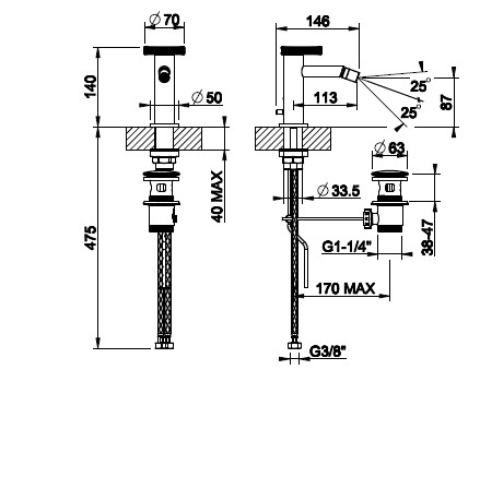 Gessi Anello Bateria bidetowa jednootworowa z korkiem chrom 63307.031
