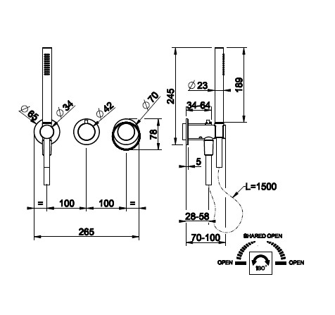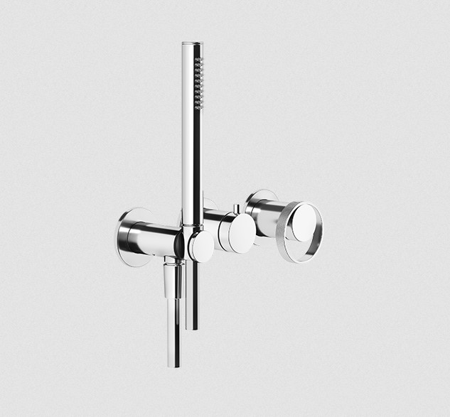 Gessi Anello Bateria prysznicowa ścienna z przełącznikiem 2-drożnym ze słuchawką i wężem część zewnętrzna chrom 63345.031
