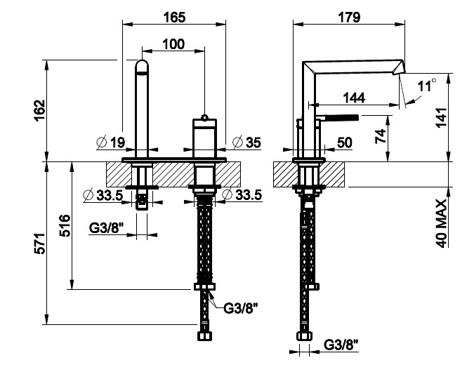 Gessi Ingranaggio Bateria umywalkowa 2-otworowa bez korka chrom 63515.031