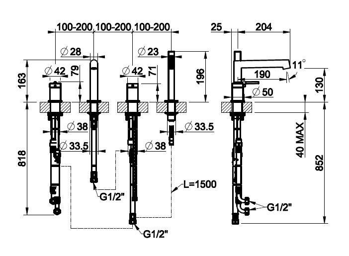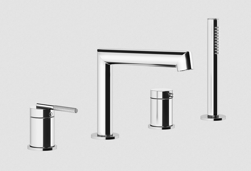 Gessi Ingranaggio Bateria wannowa 4-otworowa z przełącznikiem, wylewką, wężem i słuchawką chrom 63537.031
