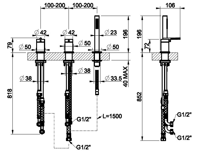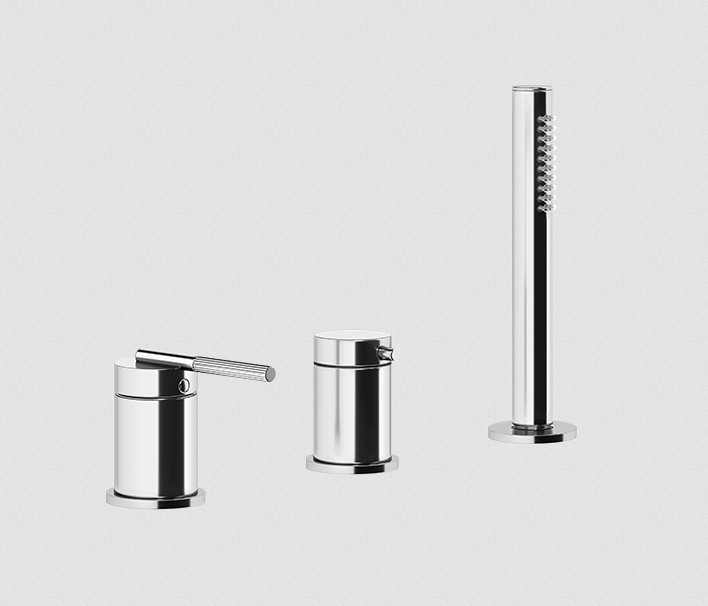 Gessi Ingranaggio Bateria wannowa 3-otworowa z przełącznikiem, wężem i słuchawką chrom 63547.031