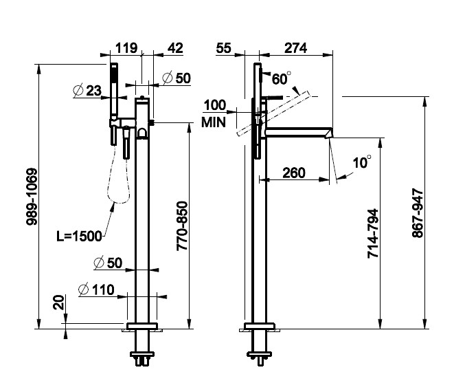 Gessi Ingranaggio Bateria wannowa wolnostojąca ze słuchawką i wężem część zewnętrzna chrom 63528.031