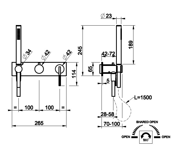 Gessi Ingranaggio Bateria prysznicowa ścienna z przełącznikiem 2-drożnym ze słuchawką i wężem część zewnętrzna chrom 63543.031