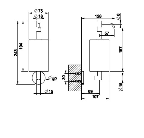 Gessi Ingranaggio Dozownik mydła czarny z uchwytem chrom 63814.031