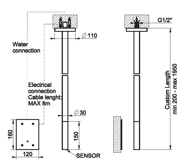 Gessi 316 Intreccio Bateria umywalkowa elektroniczna sufitowa element zewnętrzny steel brushed 54126.239