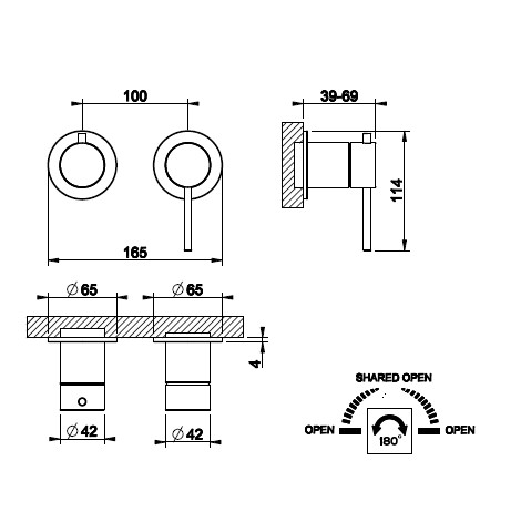 Gessi 316 Bateria prysznicowa ścienna z dwoma wyjściami element zewnętrzny steel brushed 54077.239