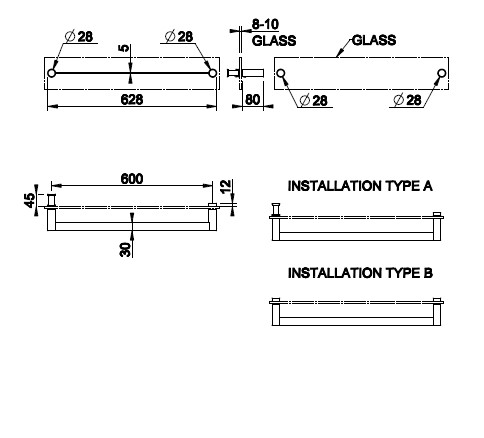 Gessi 316 Wieszak na ręczniki 60 cm do mocowania na szkle steel brushed 54925.239
