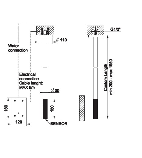 Gessi Inciso Bateria umywalkowa elektroniczna sufitowa element zewnętrzny chrom 58026.031