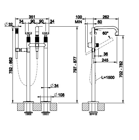 Gessi Inciso Bateria wannowa wolnostojąca ze słuchawką i wężem część zewnętrzna chrom 58129.031