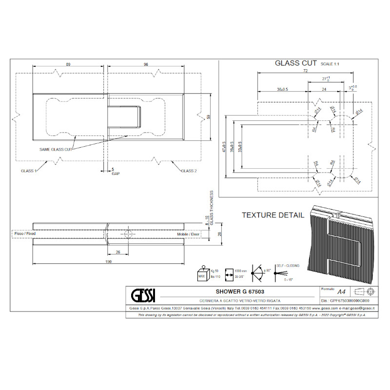 Gessi Rigato Zawias do drzwi kabiny prysznicowej Szkło-szkło Chrom 67503.031