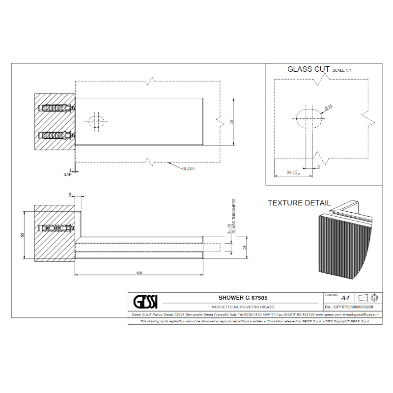 Gessi Diamantato Zacisk do ścianki kabiny prysznicowej Ściana-szkło Chrom 67605.031