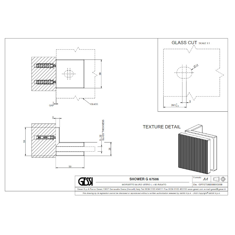 Gessi Diamantato Zacisk do ścianki kabiny prysznicowej Ściana-szkło Chrom 67606.031