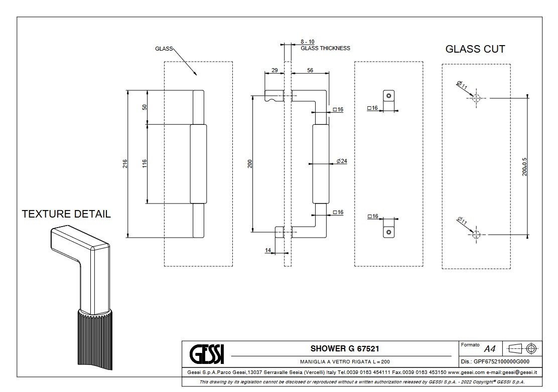 Gessi Rigato Uchwyt do drzwi prysznicowych 200 mm Chrom 67521.031