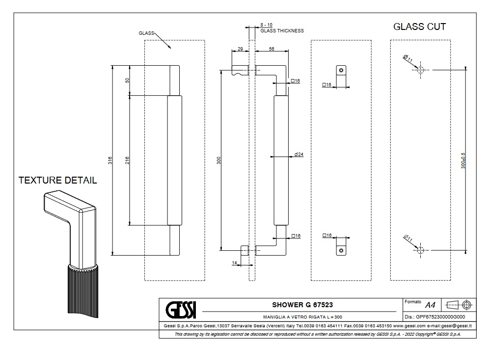 Gessi Rigato Uchwyt do drzwi prysznicowych 300 mm Chrom 67523.031