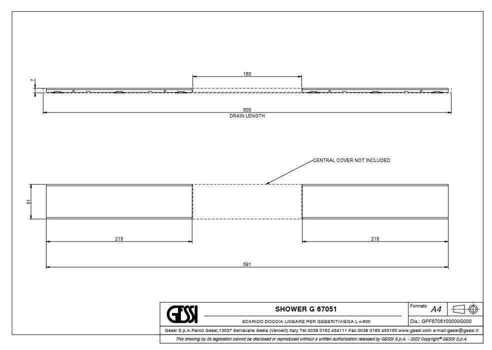 Gessi Odpływ liniowy - element zewnętrzny 600 mm Chrom 67051.031