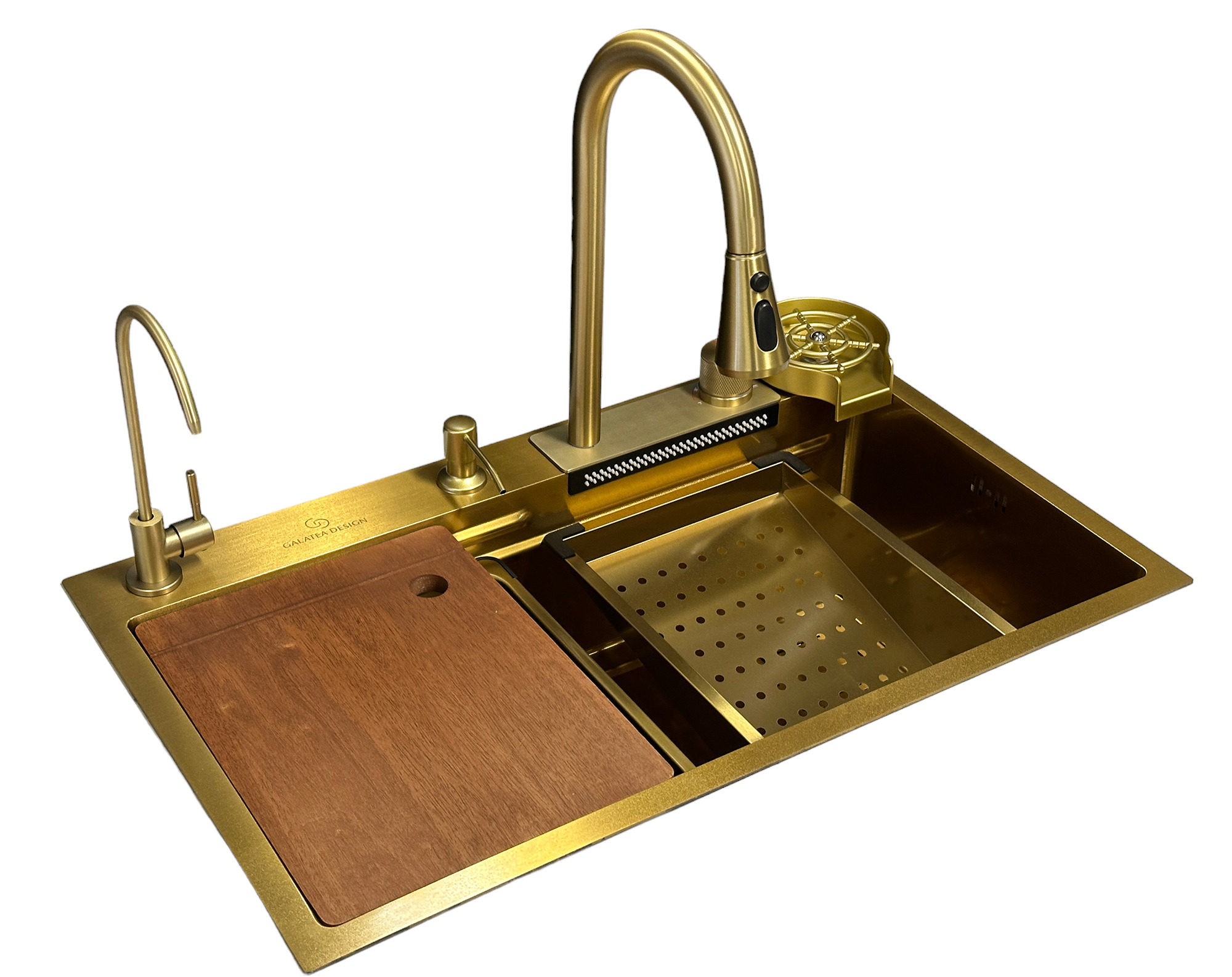 Galatea Design Modus Zlew wpuszczany z dozownikiem i baterią złoty GDP172OR