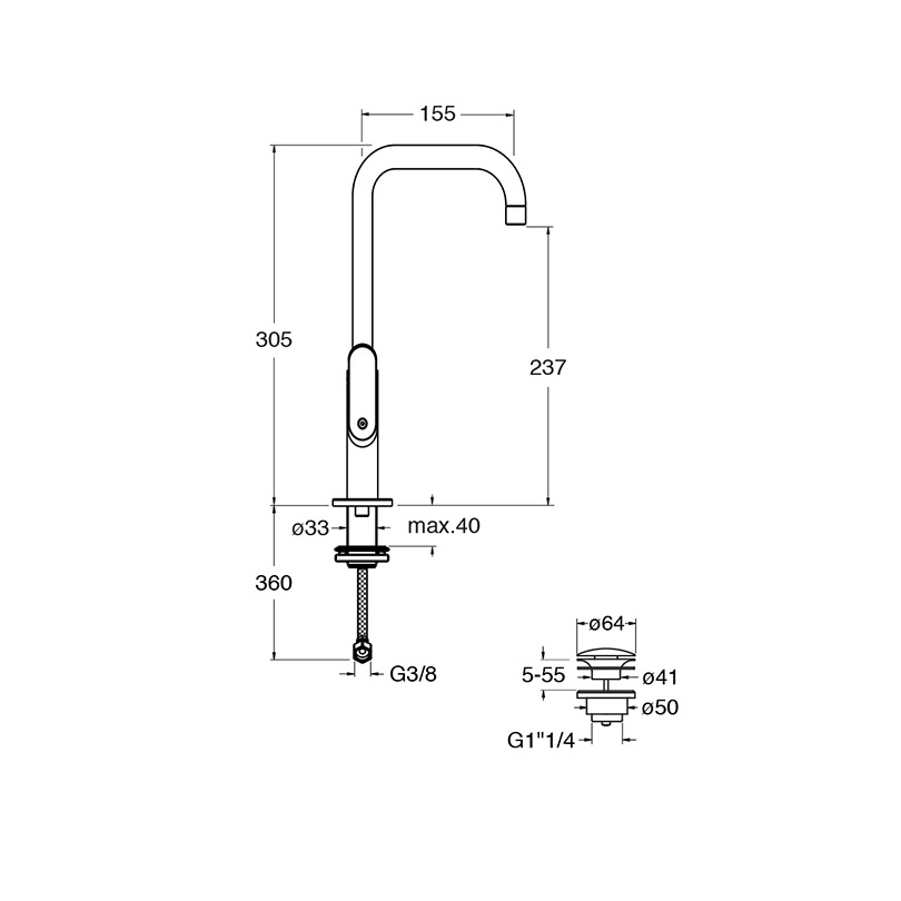 Wysokość wylewki: 23,7 cm